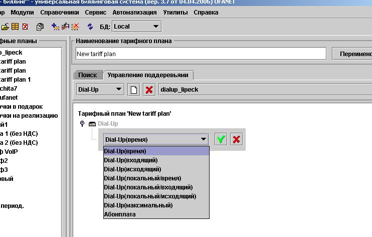 В модулях Inet, NPay кэшированное в памяти тарифицирующего приложения дерево не перечитывается до тех пор, пока не будет передано событие. Событие передаётся выбором пункта в корневом узле модульного подерева. О внесённых в поддерево изменениях сигнализирует оранжевый цвет корневого узла.