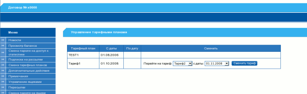 Биллинг поддерживает возможность смены тарифов пользователями через Web-интерфейс пользователя.