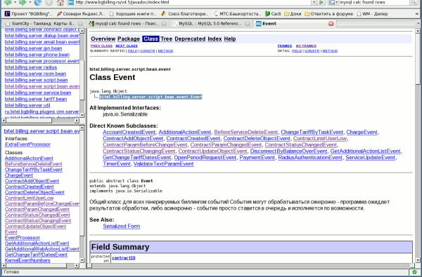 Для получения имени класса события воспользуйтесь горячей клавишей , располагаясь на списке событий в редакторе привязки событий к скрипту BGBS, либо Java-классу (см. далее). В JavaDoc по классу события представлена полная информация по событию.