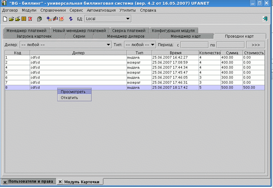 С 4.0 версии в таблице карт отображается номер договора, для создания или пополнения которого была использована карта. Двойной клик по строке открывает договор.