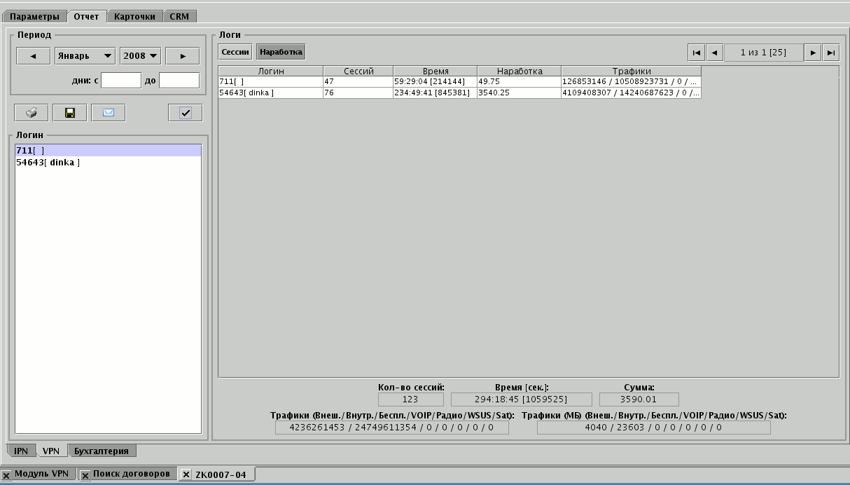 Для просмотра наработки по логинам достаточно выбрать месяц и период.