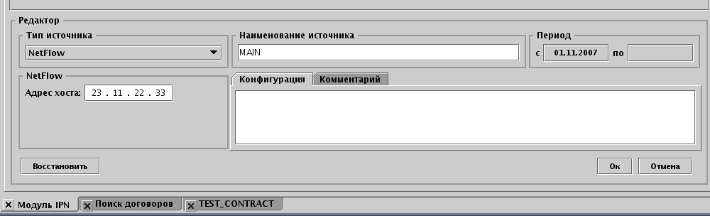 | - обработка NetFlow-потока, либо логов flow-tools коллектором, в свойствах указывается адрес хоста, с которого приходит поток; |