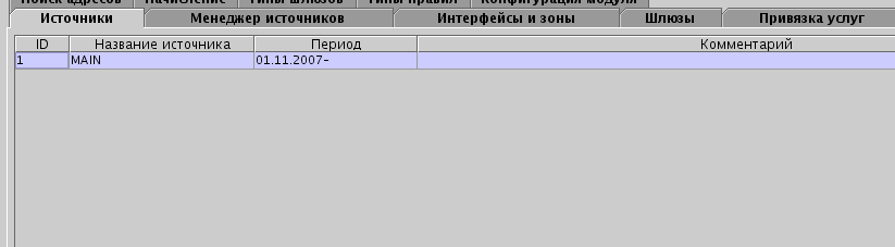 После создания источника определяются его интерфейсы. в терминах биллинга - это сетевые интерфейсы роутера, к которым могут быть привязаны клиенты. Если учёт интерфейсов не требуется, то достаточно создать на вкладке интерфейс с кодом -1 и привязывать клиентов на данном роутере к нему.