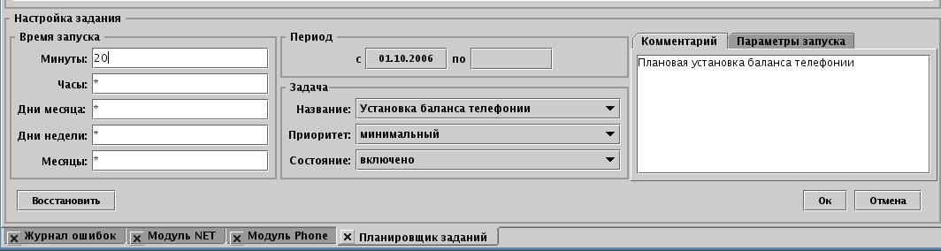 Соответственно, необходимо настроить два экземпляра задачи в планировщике заданий. Одну - периодическую, например, каждый час. Другую - в 55 минут первого часа месяца для установки баланса за предыдущий месяц с учётом последнего загруженного часового лога. Примеры настройки периодической и единоразовой задач приведены на снимках ниже.