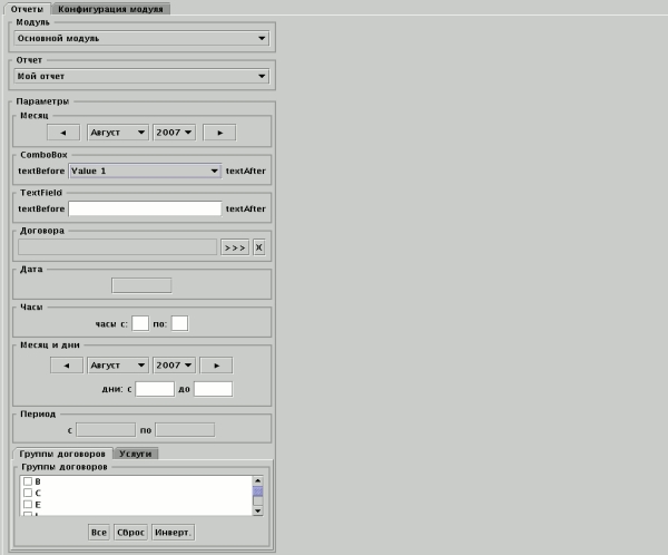 Дочерние элементы report - фильтры отображаемые в клиенте. Например, фильтры, описанные выше будут выглядеть так: