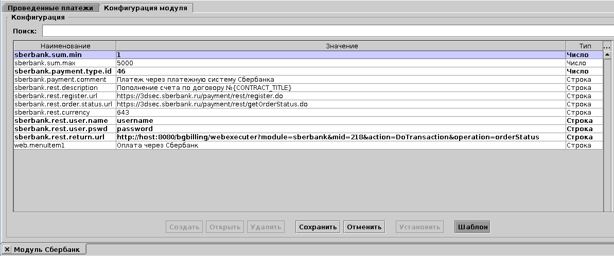 В редакторе модулей и услуг создайте экземпляр модуля sberbank.