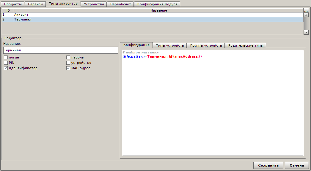 А также тип устройства - Терминал. В поле Родительские типы поставьте галочку на типе "Аккаунт", который создали только что.