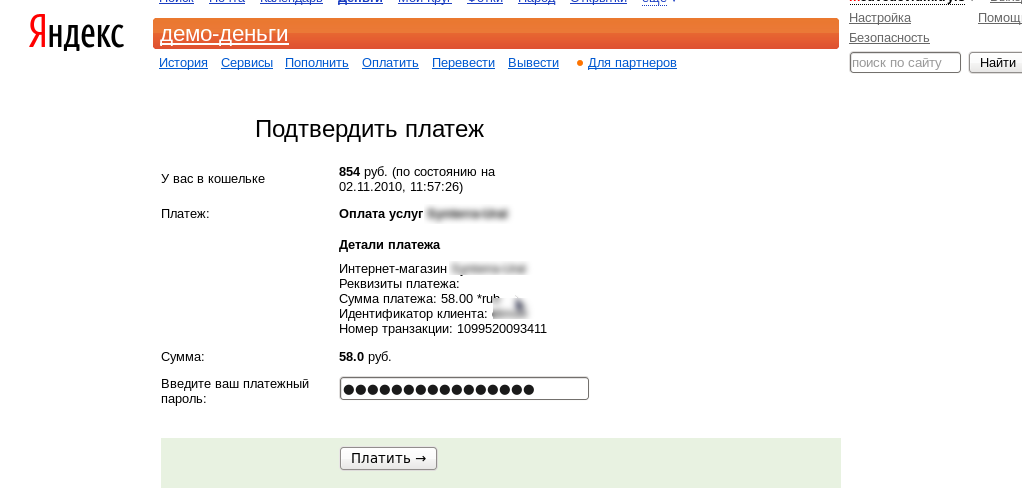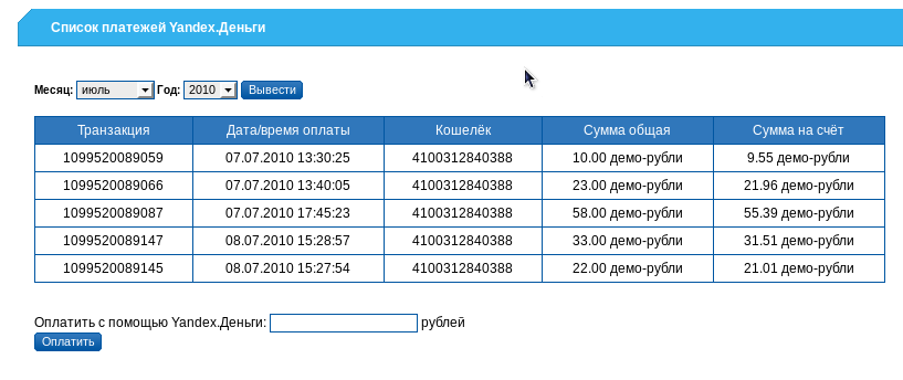 Если у абонента подключён экземпляр модуля, то он может произвести оплату услуг через Web-интерфейс (пункт меню ). Здесь же клиент может просмотреть все проведённые им платежи: