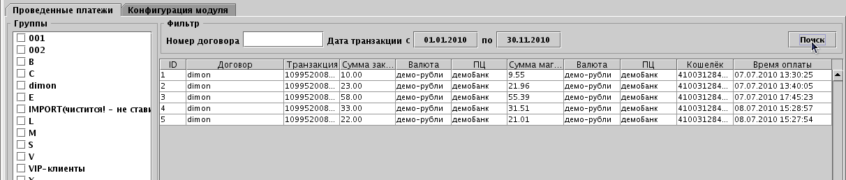В параметрах модуля есть глобальный монитор платежей.