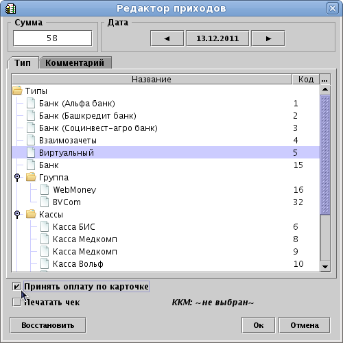 При установке и активации плагина в диалоге добавления платежа появляется галка "принять оплату по карте".