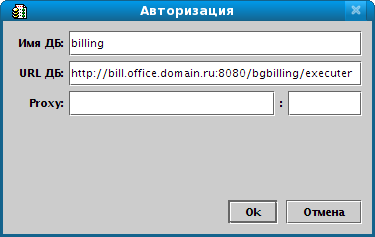 В случае, если клиент установлен на одну с сервером машину, ничего менять не надо. Если необходимо подключиться к серверу с другого рабочего места укажите вместо 127.0.0.1 адрес машины, где установлен сервер BGBilling и, при необходимости, хост и порт прокси, если подключение идёт не напрямую.