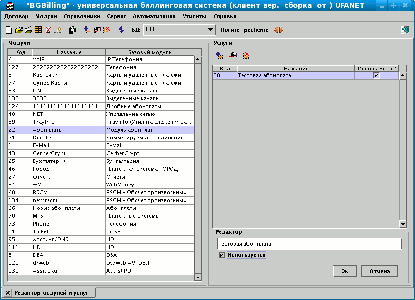 После того, как установили модуль, необходимо перезапустить сервер биллинга. После этого должен быть обновлён клиент. Для этого запустите его и подсоединитесь к обновлённому серверу биллинга.