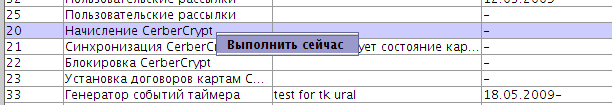 Специально для выполнения периодических процессов (снятие абонплат, очистка таблиц, восстановление лимитов на договоре и т. д.) в системе предусмотрен планировщик задач, выполняющий задачи в заданные интервалы времени.
