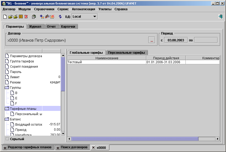 В договоре могут быть определены собственные (персональные) тарифные планы.