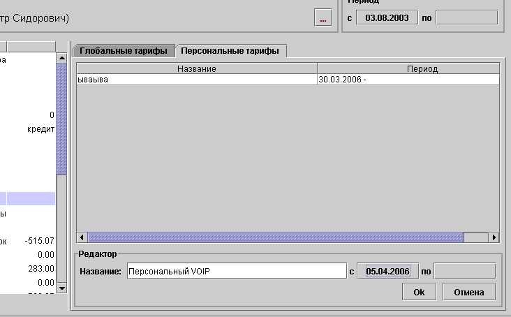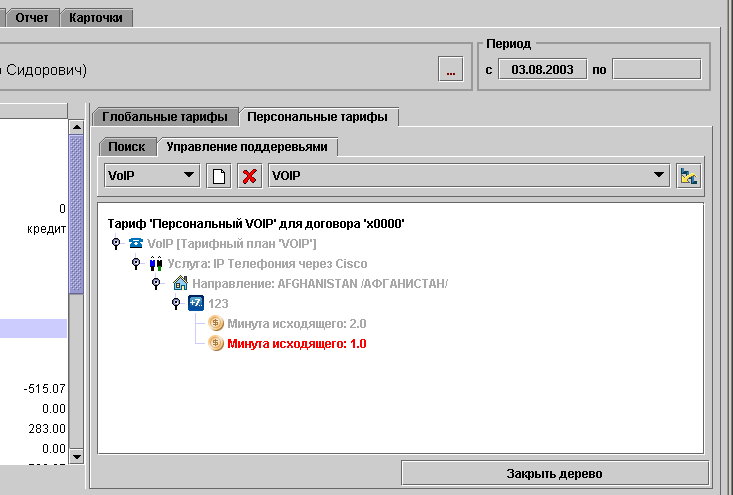 Далее для редактирования дерева тарифа строку с тарифом нужно выбрать в таблице персональных тарифов и нажать кнопку в нижнем правом углу. Правила редактирования дерева персонального тарифа не отличаются от редактирования дерева глобального тарифа. Персональный тариф может быть расширен от глобального, либо создан с нуля.
