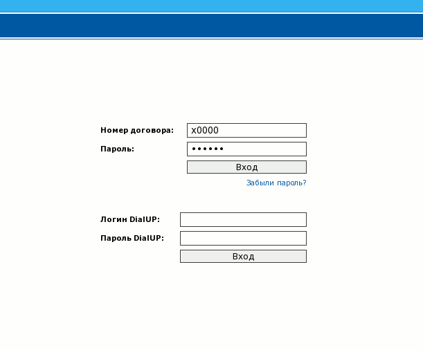 <form method="post" action="webexecuter"> <input type="hidden" name="midAuth" value="21"/> <table align="center" width="300px" class="filter" style="margin-top:20px;"> <tr> <th align="left">Логин DialUP:</th> <td><input class="logon" type="text" name="user" SIZE="15"/></td> </tr> <tr> <th align="left">Пароль DialUP:</th> <td><input class="logon" type="password" name="pswd" SIZE="15"/></td> </tr> <tr> <td></td> <td><input type="submit" value="Вход" style="width: 100%; border: 1px solid #404040;"/></td> </tr> </table> </form>