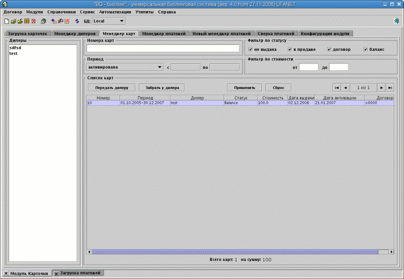 С 4.0 версии в таблице карт отображается номер договора, для создания или пополнения которого была использована карта. Двойной клик по строке открывает договор.