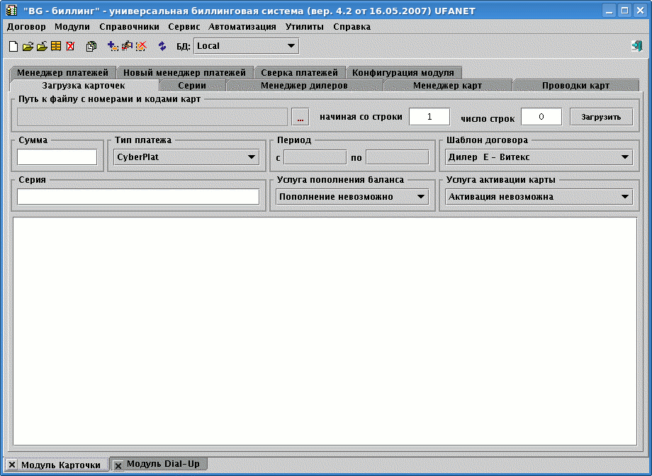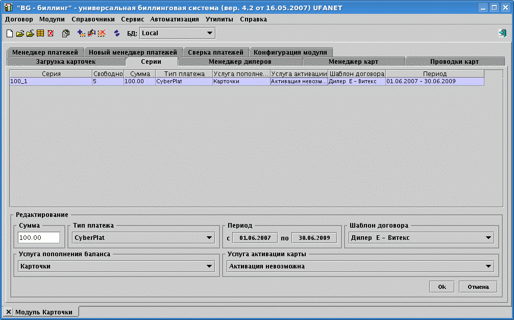 Серии следует именовать подобным образом - "Универсальные 200 ки от 24.06.07 1000 штук" - для простой идентификации группы карт в дальнейшем. Если при загрузке какие-то данные были указаны неверно, вы можете редактировать карты, используя вкладку . Также возможно удаление ошибочно загруженной серии.