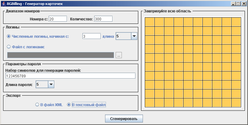 Допустим, вам нужно сгенерировать карточки с серийными номерами 20 - 300, логины начиная с 3.