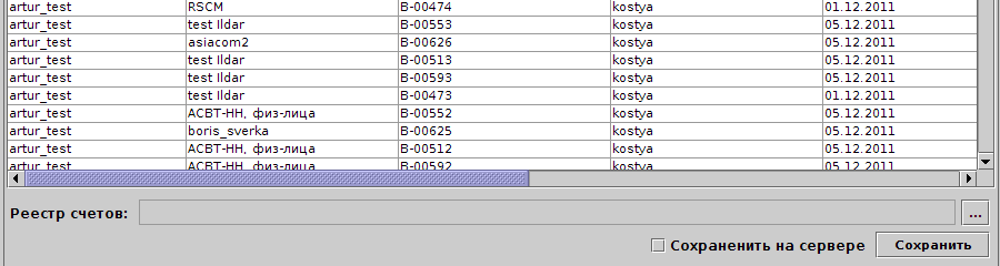 Также возможно выгрузить реестр на стороне сервера. Для этого необходимо перед выгрузкой в клиенте указать данную опцию, выбрав галочку, и в конфигурации модуля указать следующие параметры: - для выгрузки счетов и - для выгрузки счетов-фактур, где - путь с именем файла, куда будет происходить выгрузка. Необходимо проветить права на запись у указанной директории, чтобы сервер смог туда записать фалы. При выгрузке реестра, если файл не существует, то он будет создан, а если существует, то все данные, содержащиеся в файле, будут заменены нвовыми.