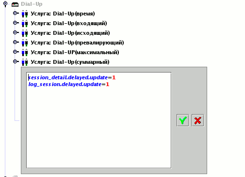 При безлимитных тарифах жёсткое фиксирование посчитанного по нулевой цене трафика в session_detail не обязательно, информация может быть сохранена в конце часа, либо сессии. Так же не требуется постоянное обновление таблицы log_session (стоимость сессии и время её окончания). Для включения отложенного обновления таблиц session_detail и log_session возможно определение в узле тарифного плана следующих правил: