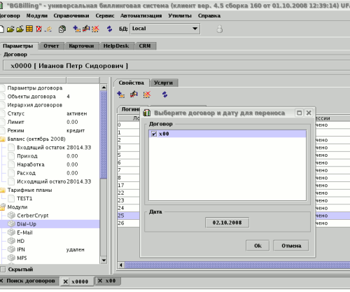 Пункт переносит логин из одного договора в другой (карточка должна быть открыта в текущий момент), при этом перемещается и вся наработка по данному логину. При переносе переносится наработка по логину только на период действия логина.