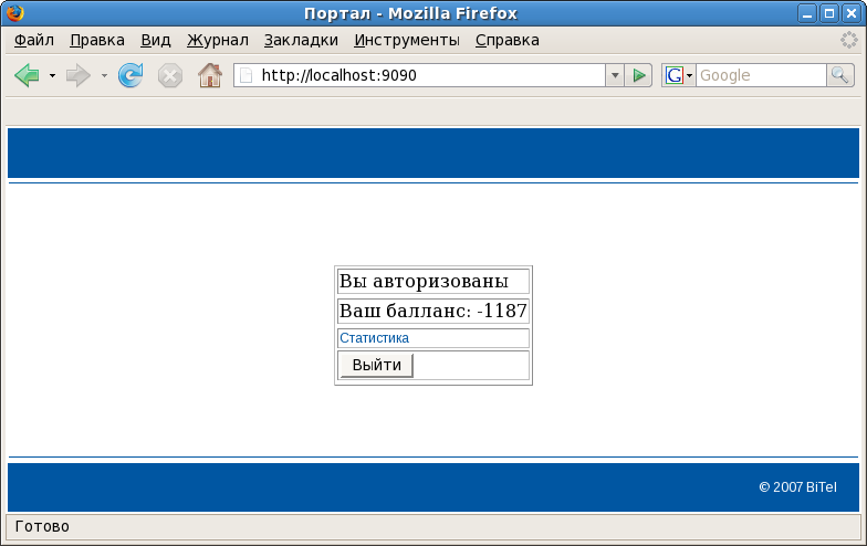 На эту страницу пользователь может попасть всегда (даже после авторизации), зайдя на http://192.168.184.39:9090 (путь зависит от настроек). Здесь он видит свой баланс, ссылку на первоначальный ресурс , который он набирал до того, как его перенаправили на страницу авторизации. Также есть альтернативная ссылка на эту страницу через https.