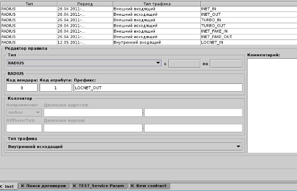 - это категория, необходимая для разделения потребляемого трафика по типам. Например: "Входящий внешний", "Входящий внутренний", "Входящий локальный", "Радио", "Голосовой трафик". Время также является специальным типом трафика с кодом 0, который всегда потребляется в ходе работы. Перечень типов трафика редактируется на подвкладке .