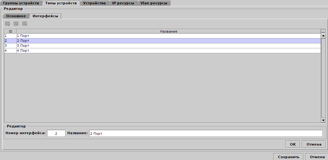 На вкладке типа устройства указываются его интерфейсы, к которым могут быть привязаны сервисы. Например, это могут быть порты коммутаторов.