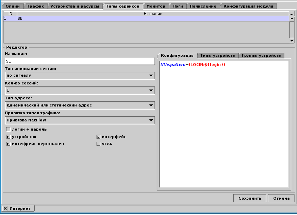 Пример конфигурации типа сервиса: