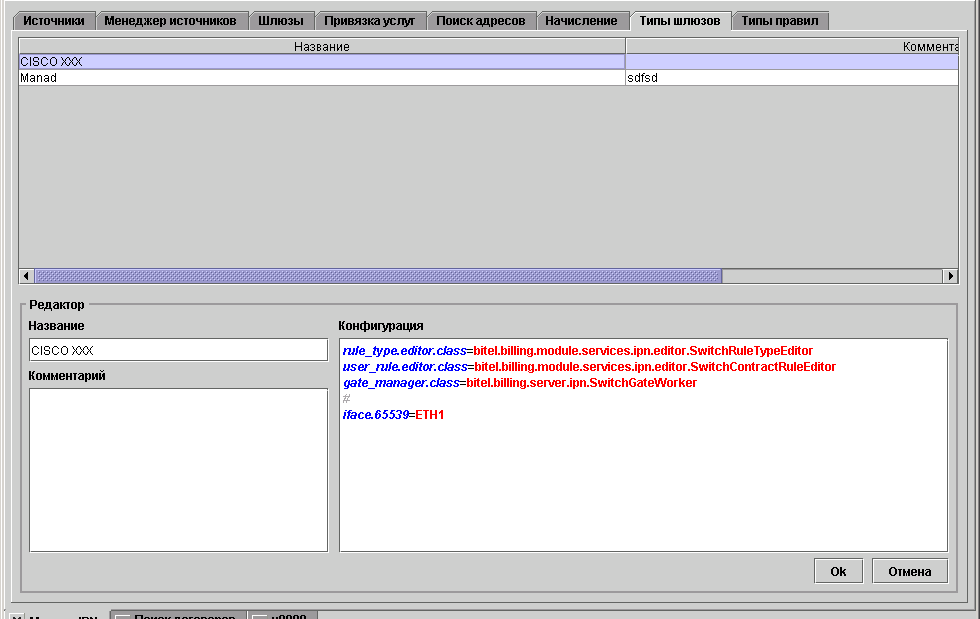 Следующий шаг - создание типа шлюза. Допустим, мы хотим создать тип шлюза CISCO XXX с определённым набором фиксированных интерфейсов (портов), причём на каждом из шлюзов этого типа могут быть дополнительные интерфейсы типа VLAN.