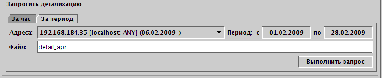 Детализация за период сохраняется в файл. Выберите диапазон адресов, период и имя файла. Каталог, куда будет выкладываться детализация на сервере прописывается в настройках коллектора в файле . Названия каталогов на разных коллекторах могут отличаться, но все коллекторы должны ссылаться на один каталог.