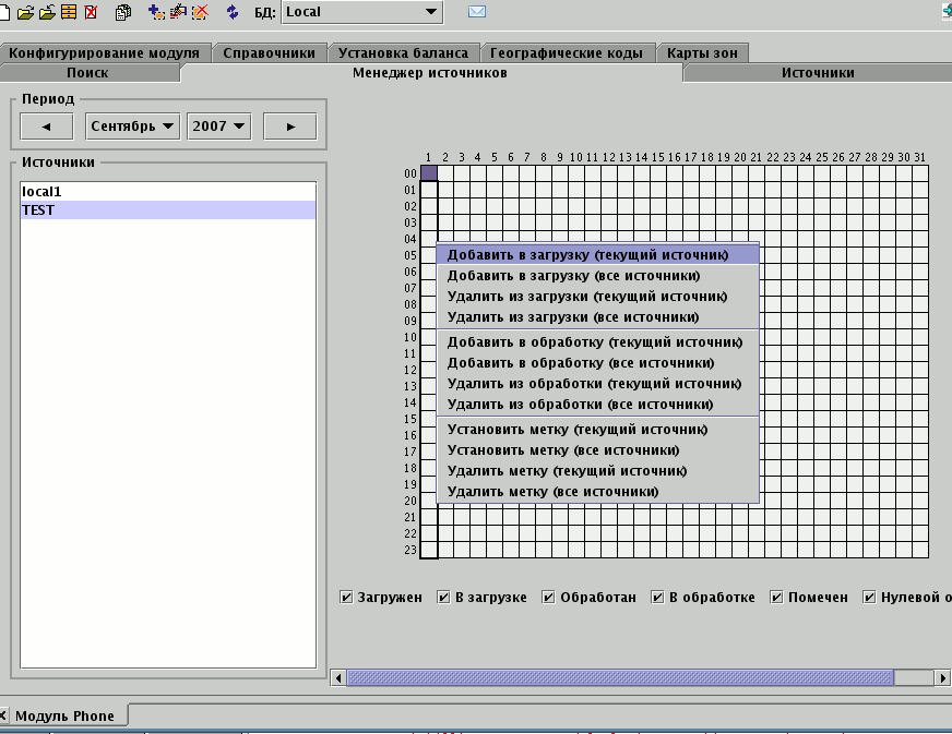Найденные ошибки необходимо исправлять и запускать переобработку логов до полного исчезновения ошибок в журнале. Добавление логов в обработку производится в путем выбора квадрата часов и активации пункта меню для выбранного источника.