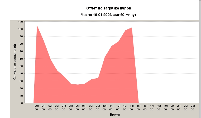Позволяет посмотреть загрузку модемного, либо VPN-пула по количеству одновременных соединений с заданным шагом.