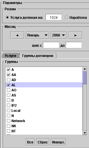 Позволяет просмотреть наработку по dialup + произвольным услугам
