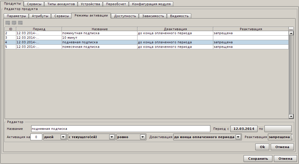 Чтобы абонент мог активировать Продукт (тем самым активируя подписку в IPTVPortal) необходимо, чтобы в продукте был задан хотя бы один режим активации. Далее от выбранного режима активации может зависеть режим тарификации.