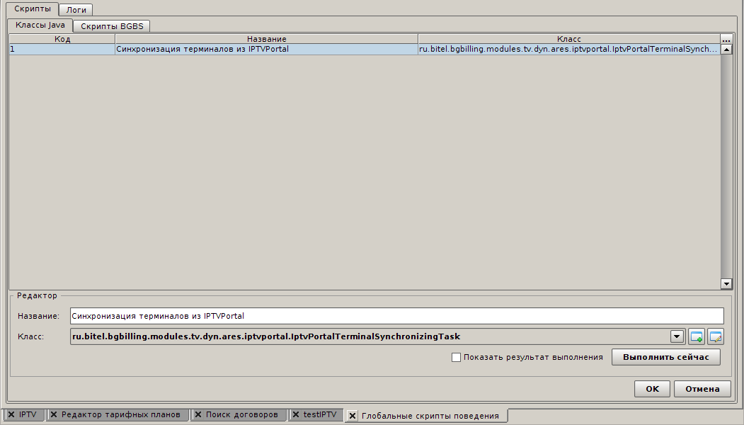 При регистрации терминала в системе IPTVPortal не приходит какое-либо уведомление в биллинг. Поэтому для синхронизации информации о терминалах нужно создать отдельную задачу. Для этого сначала нужно добавить глобальный скрипт поведения: