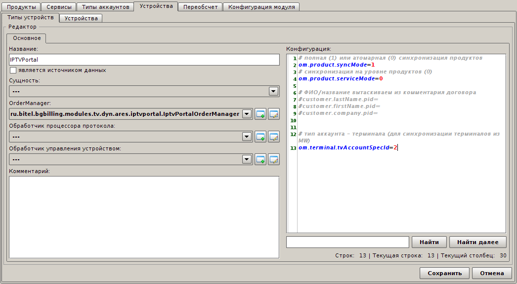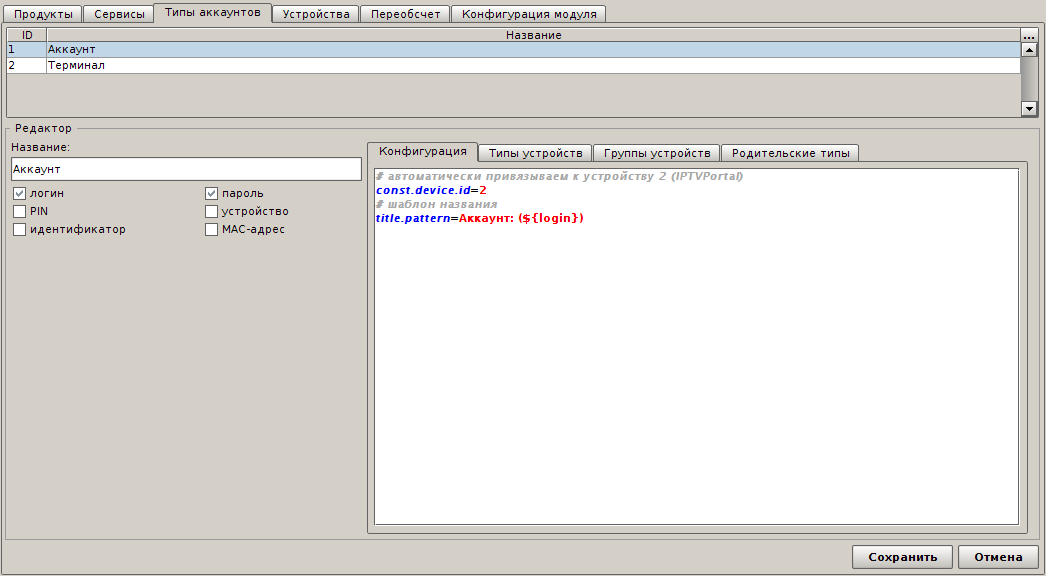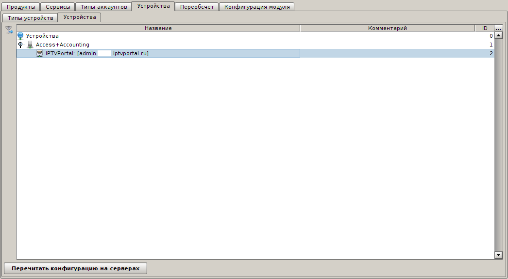 Заметьте, что у типа устройства IPTVPortal ID получился равным 2. Именно это значение и прописано в конфигурации модуля, в параметре om.deviceTypeIds.