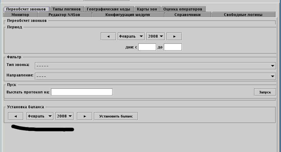 На скриншоте изображена панель запуска ручной установки баланса, её необходимо производить каждый раз, как только требуется узнать текущий баланс оператора. В случае, если вы не устанавливали баланс за прошлый месяц, необходимо сначала установить баланс предыдущего месяца, а затем текущий.