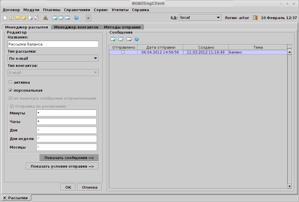 Для сообщения также есть возможность указания времени отправки сообщения для отложенной отправки сообщения. Будут отправлены только те сообщения, время которых уже пришло.